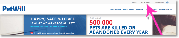 1. Please click LOGIN in the top header of MyPetWill.com.