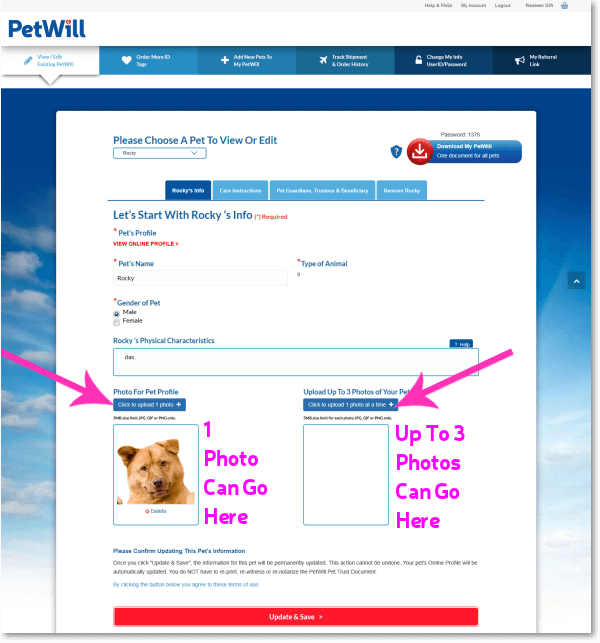 side "Upload Up To 3 Photos of Your Pet" area.